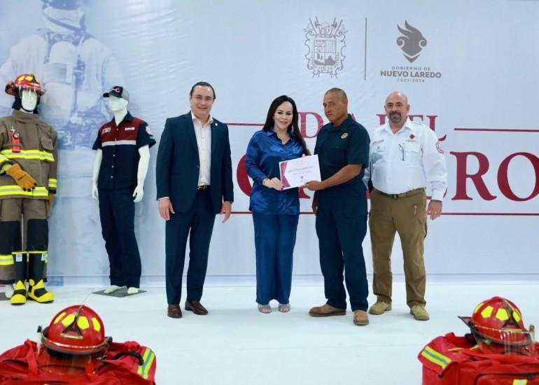 En el marco de la celebración del día Nacional del Bombero, la alcaldesa Carmen Lilia Canturosas Villarreal entregó equipo de protección y uniformes a los elementos de la corporación, además de anunciar un aumento de sueldo con el que tendrán un mejor ingreso familiar.