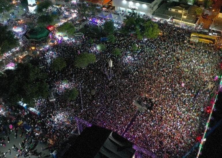 La alcaldesa Carmen Lilia Canturosas Villarreal encabezó el evento en la explanada de la Independencia que se iluminó con el espectáculo de pirotecnia.