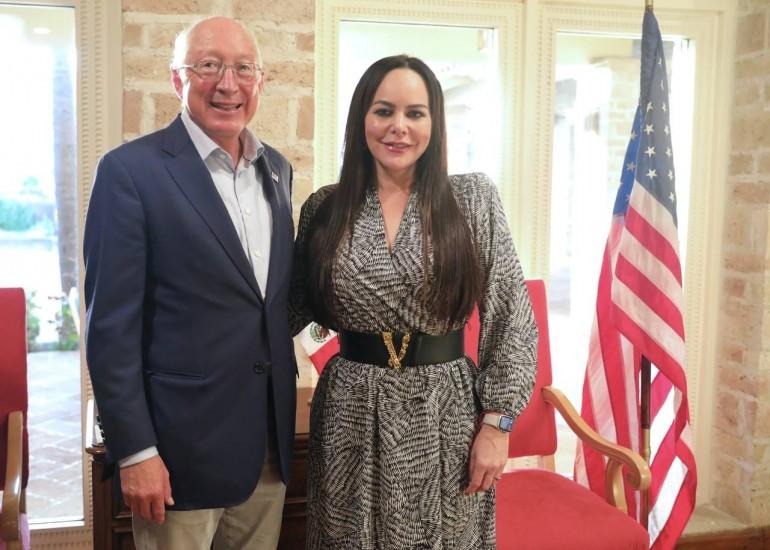 ACUERDAN CARMEN LILIA CANTUROSAS Y EMBAJADOR KEN SALAZAR IMPULSAR ECONOMÍA DE LOS DOS LAREDOS