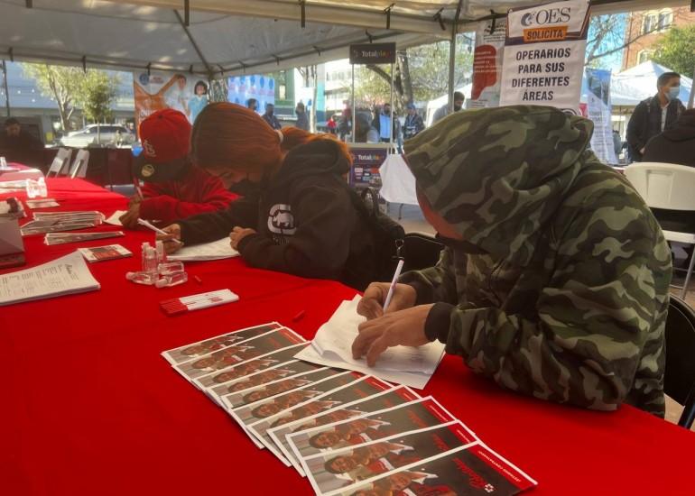 Fue en la plaza Hidalgo desde las 9:00 de la mañana en el que empresas maquiladoras, transportistas, agencias aduanales, comerciales y de servicios se instalaron para dar a conocer opciones laborales.