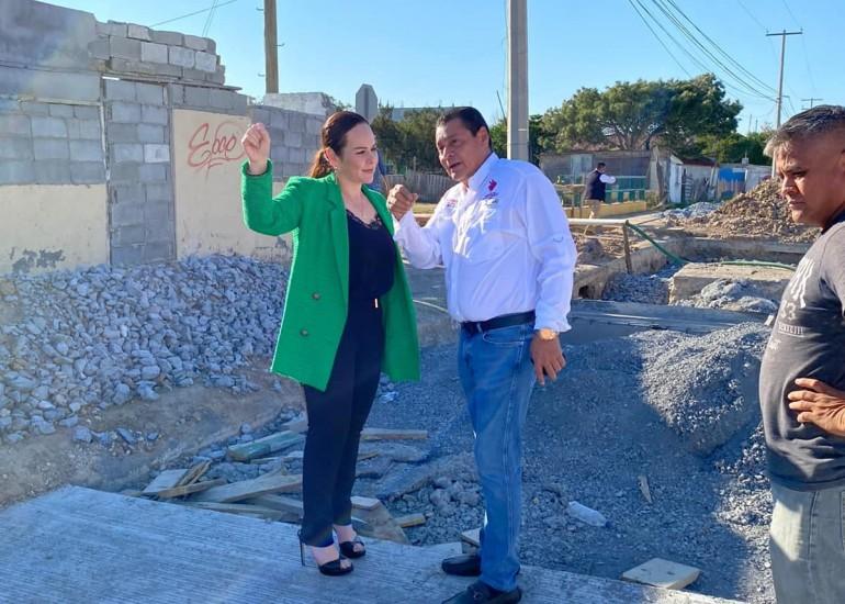La alcaldesa Carmen Lilia Canturosas Villarreal junto al secretario de Obras Públicas, Carlos de Anda Hernández, realizó un recorrido de obras para conocer la situación de tres construcciones importantes en la colonia Concordia y el bulevar Colosio.
