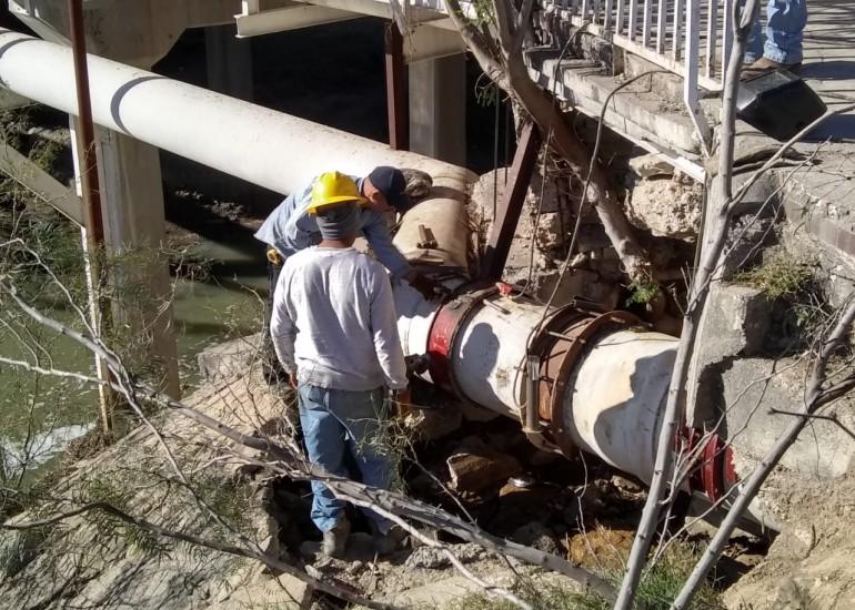 Concluye la Comisión Municipal de Agua Potable y Alcantarillado de Nuevo Laredo la interconexión de dos líneas de agua potable al sur de la ciudad por trabajos de obras públicas y la reparación de una tubería de 24 pulgadas de diámetro en la Antigua Carretera Nacional