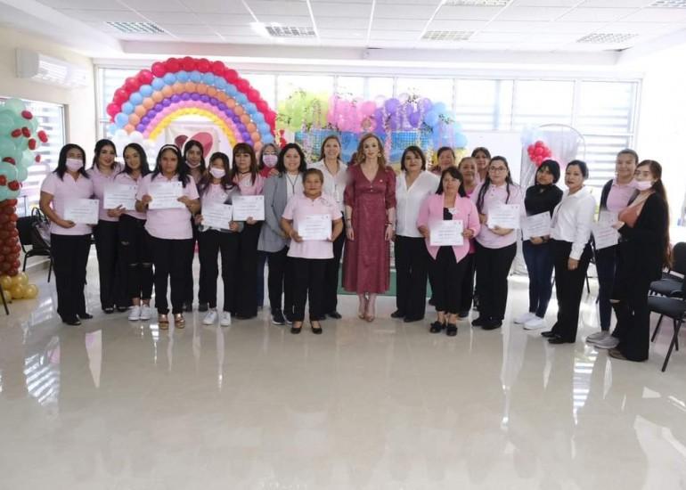 Las graduadas recibieron su constancia de manos de la presidenta del Sistema DIF Claudette Canturosas de Salinas, quien las felicitó por estos tres meses de esfuerzo, superación y por impulsarse en el camino del emprendimiento.