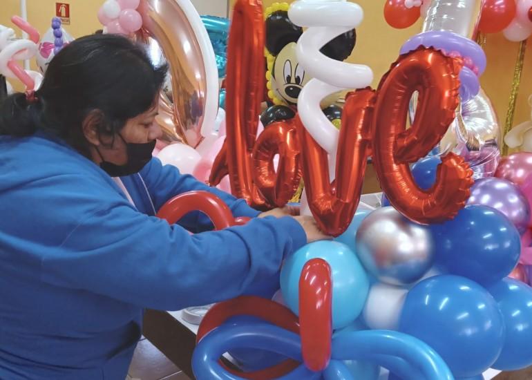 Un grupo de 23 alumnas aprenden de lunes a viernes de 12 del medio día a tres de la tarde, sobre la teoría y práctica de cómo realizar sus propias figuras decorativas con globos,con lo que posteriormente podrán autoemplearse o emprender un negocio.