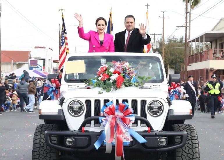 REPRESENTA ALCALDESA CARMEN LILIA CANTUROSAS A NUEVO LAREDO EN DESFILE POR NATALICIO DE GEORGE WASHINGTON