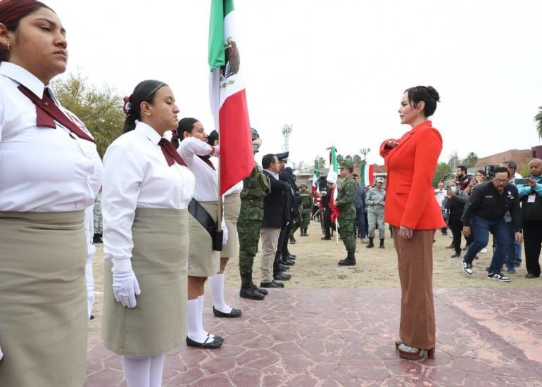 La alcaldesa Carmen Lilia Canturosas destacó el orgullo de ser mexicanos y el tener una bandera que representa las raíces e identidad del país. La cual simboliza la libertad y la constitucionalidad.