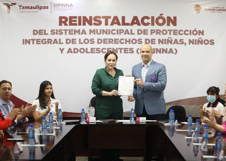 En el marco de la reinstalación del "Sistema Municipal de Protección Integral de los Derechos de Niñas, Niños y Adolescentes (SIPINNA), la alcaldesa Carmen Lilia Canturosas señaló que día a día se trabaja en la construcción de un Nuevo Laredo con igualdad de oportunidades, inclusivo y respetuoso.