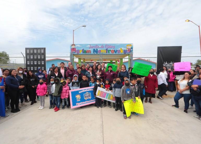 Por su parte, la directora del jardín de niños “Myriam Nemirovsky”, Marta del Socorro Hernández González, explicó que a raíz de la tormenta ocurrida en mayo del 2021 el plantel tuvo que sesionar las clases en línea y agradeció el apoyo del Gobierno Municipal para reactivar las clases presenciales.