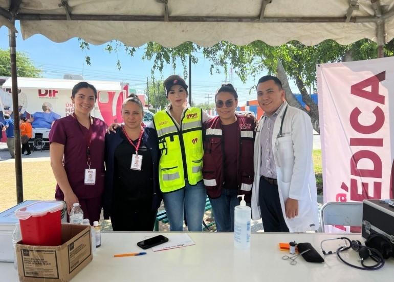 Cientos de vecinos de la colonia Infonavit fueron beneficiados con la Mega Brigada “Tocando Corazones” que realizó el Sistema para el Desarrollo Integral de la Familia (DIF) de Nuevo Laredo en la Rotonda de la UAT para acercar todos sus servicios.
