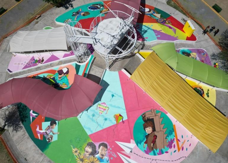 Los trabajos del mural en el resbaladero “tipo volcán” ubicado en el parque Viveros concluyeron y ya se encuentra listo para que los niños y niñas de la ciudad lo puedan disfrutar.