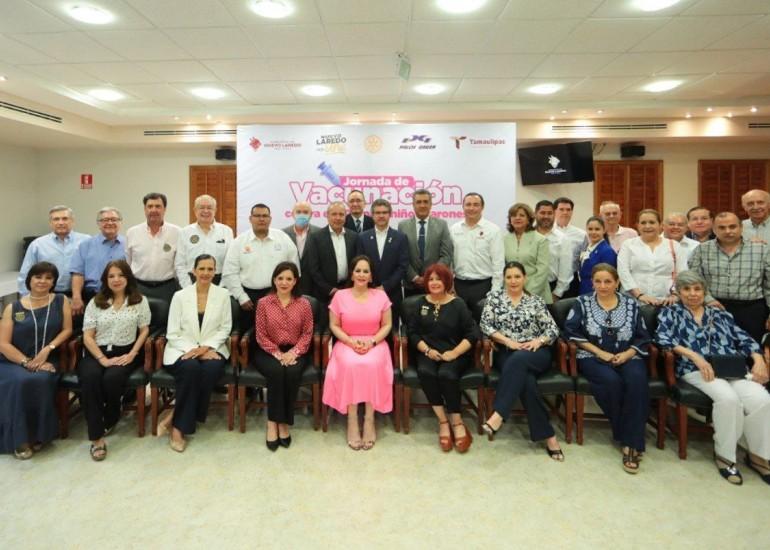 En conferencia de prensa la alcaldesa Carmen Lilia Canturosas Villarreal junto a Raúl Flores, gobernador Rotary Distrito 4130; Eduardo Cervantes Ramírez, presidente del Club Rotario Nuevo Laredo; Mario Palos Garza, presidente de Fundación PG Maratones y la Dra. Liliana Arjona Barocio, directora de Salud Municipal, dio a conocer los detalles de la campaña y reiteró el compromiso de la administración de atender y prevenir enfermedades en las familias de Nuevo Laredo.