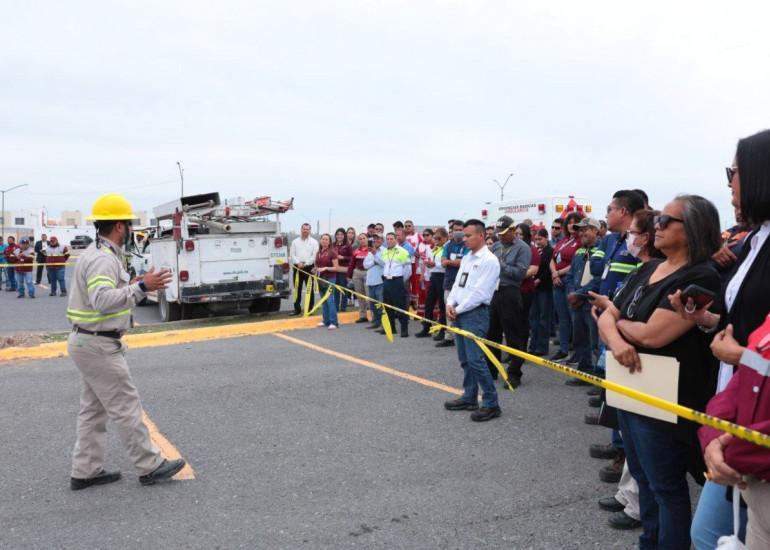 El director de PCYB municipal, Humberto Fernández Diez de Pinos, explicó que se ejemplificó el cómo actuar ante un cortocircuito de un transformador de luz, además que todo el personal participante recibió una práctica teórica.