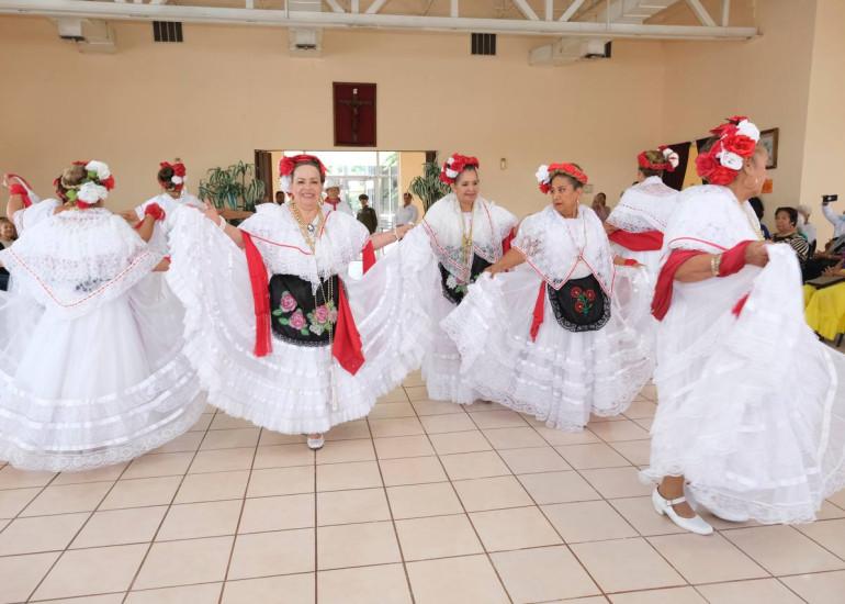 Los abuelitos presentaron más de 10 coreografías de danzas típicas mexicanas, iniciando con el huapango en donde las integrantes lucieron sus vestuarios y dieron muestra de lo aprendido durante sus clases de baile que reciben en Casa Club.