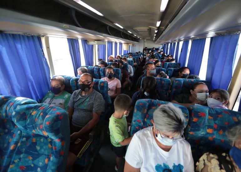 Desde la sala Sergio Peña la ciudadanía será trasladada a Laredo, Texas en donde les aplicarán la vacuna.