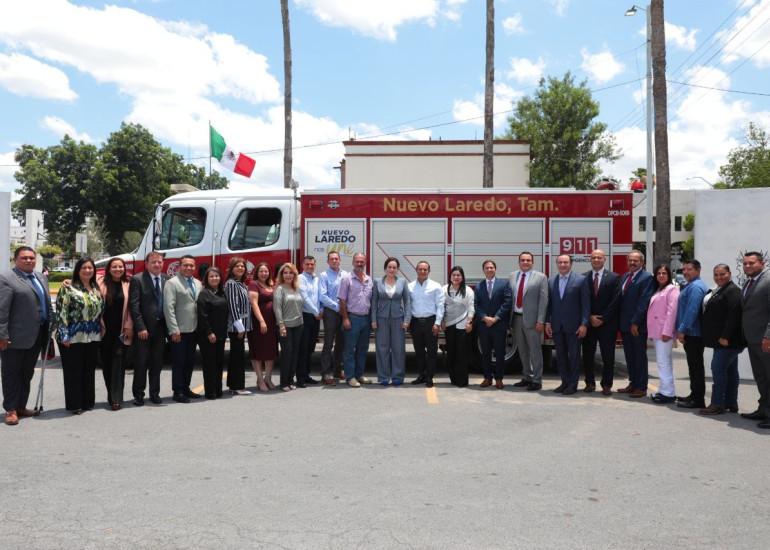 Para reforzar el trabajo a favor del bienestar de los neolaredenses, empresarios locales realizaron una donación al Gobierno Municipal de una máquina apagadora que reforzará los trabajos que emprende el heróico cuerpo de bomberos para velar por la seguridad e integridad de los ciudadanos.