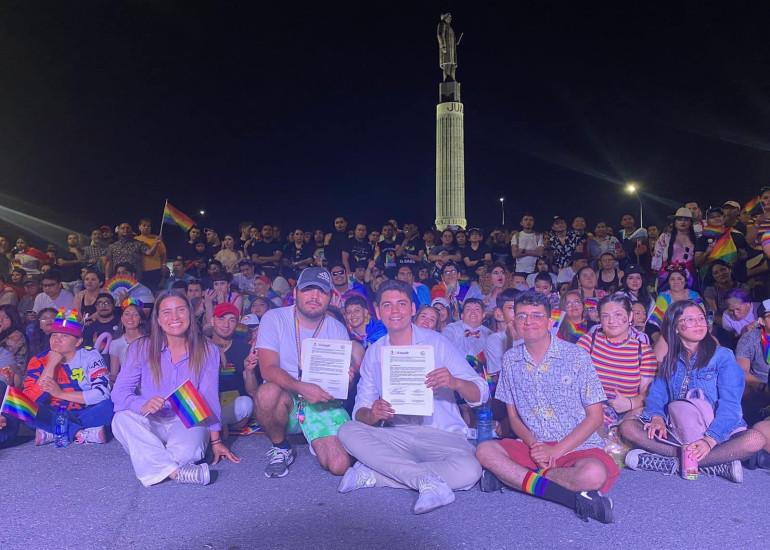 Jesús Espinoza Hernández, titular del IMJUVE, mencionó que durante la onceava marcha llevada a cabo el sábado, se realizó esta firma con Javier Tamez presidente del comité de Nuestro Orgullo Gay.