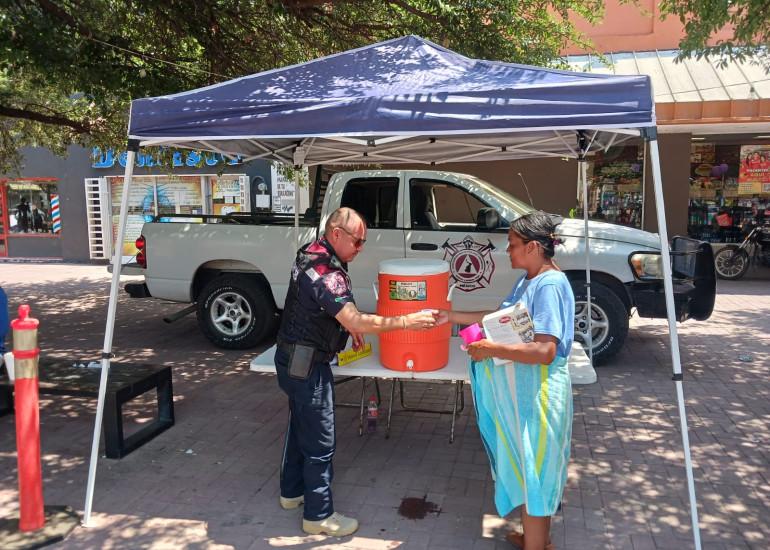 Como medida preventiva el personal de la Dirección de Protección Civil y Bomberos realiza recorridos en diversos puntos de la ciudad como las afueras de hospitales, plazas y parques, para brindar a la ciudadanía suero hidratante y evitar incidentes.