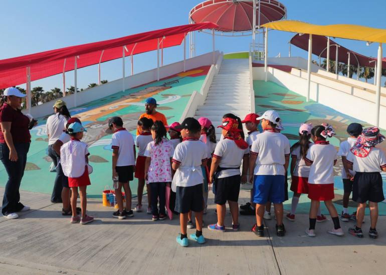 SE UNEN NIÑOS A PINTA DE MURAL EN VOLCÁN DEL PARQUE MENDOZA