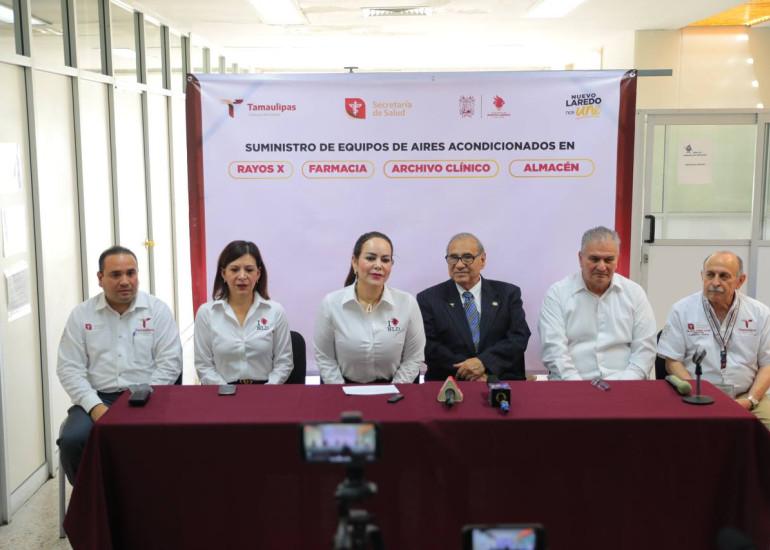 Hernández Navarro, recalcó que en Nuevo Laredo las instalaciones estatales han tenido mucho apoyo por parte del Gobierno Municipal, prueba de ello es la donación de los aires acondicionados que mejoran las condiciones de trabajo y favorecen el resguardo de medicamentos y alimentos.