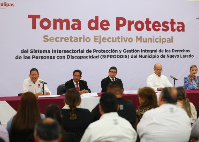 Con la finalidad de promover y generar programas y acciones que motiven la superación personal de los ciudadanos con discapacidad, se tomó protesta al director de Vinculación social, José Hermin Pascacio Rodríguez, como Enlace Ejecutivo Municipal del Sistema Intersectorial de Protección y Gestión Integral de los Derechos de las Personas con Discapacidad (SIPRODDIS).