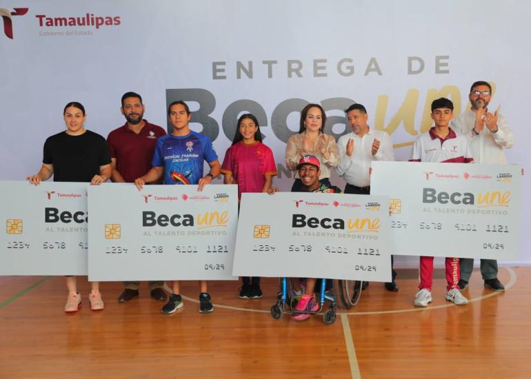 Para contribuir a la formación y desarrollo de los atletas neolaredenses, la presidenta municipal Carmen Lilia Canturosas Villarreal, hizo entrega de 174 tarjetas a los beneficiarios del programa “Beca UNE al talento deportivo” en el que se invirtieron más de 10 millones de pesos.