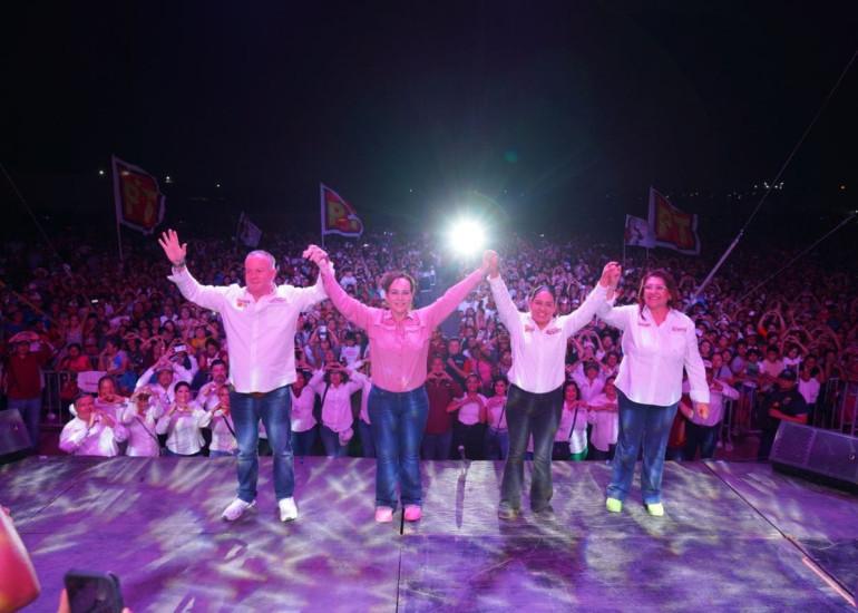 Durante este gran evento la candidata estuvo acompañada de su esposo Oscar Mario Hinojosa; Carlos Canturosas, candidato a diputado federal; las candidatas a diputaciones locales Gabriela Regalado y Ana Laura Huerta; y los candidatos de la planilla de síndicos y regidores.
