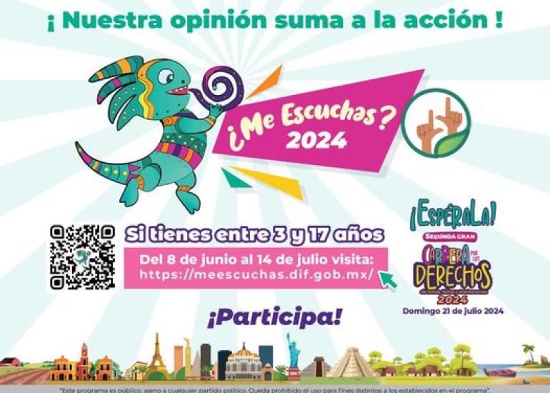 En esta consulta, pueden participar los menores entre 3 y 17 años, ingresando al sitio web oficial https://meescuchas.dif.gob.mx/ .