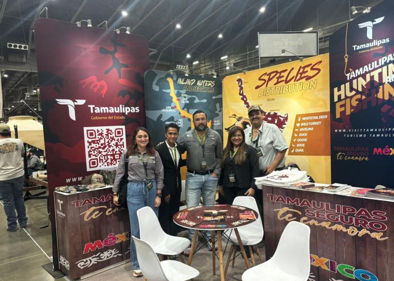 En la feria cinegética de Houston, Texas, estuvieron presentes Benjamín Hernández, secretario de Turismo de Tamaulipas; Karime Cámara Cahín, jefa del departamento de Turismo de Negocios; Andrea Panjón, del área de promoción del gobierno estatal; Marcos Rodríguez Leija, Director de Turismo de Nuevo Laredo y César Johnson Villarreal, jefe de Turismo Cinegético de Nuevo Laredo