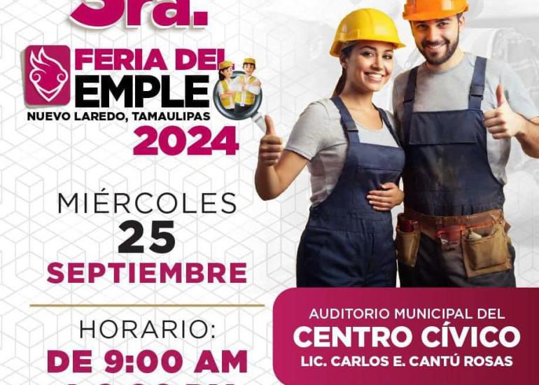 El Gobierno Municipal invita a la ciudadanía a la Tercera Feria del Empleo que se realizará en el Centro Cívico “Carlos E. Cantú Rosas” este miércoles 25 de septiembre en horario de las 9:00 AM a las 2:00 PM.