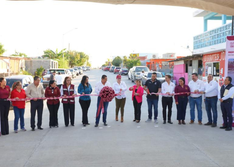 Asimismo, se entregó la repavimentación con concreto hidráulico de la calle Tajín, entre Nuevo Laredo y Chiapas, en la colonia Palmares, con una inversión de 3 millones 574 mil 931 pesos con 50 centavos y una superficie de 1,690.21 metros cuadrados.