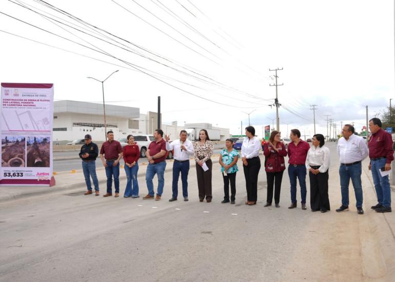 Este drenaje pluvial por la lateral poniente de la Carretera Nacional tuvo una inversión de 13 millones 776 mil 787 pesos con 77 centavos.