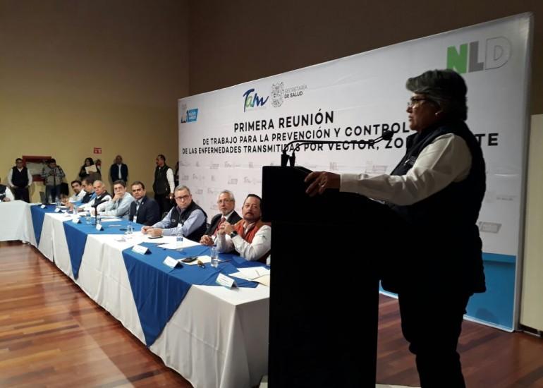 La titular de la SST y el alcalde de Nuevo Laredo,Enrique Rivas Cuéllar, presidieron en este puerto fronterizo, un encuentro de trabajo para analizar el panorama epidemiológico de las enfermedades transmitidas por vector, el cierre 2107 y las estrategias preventivas para el presente año.