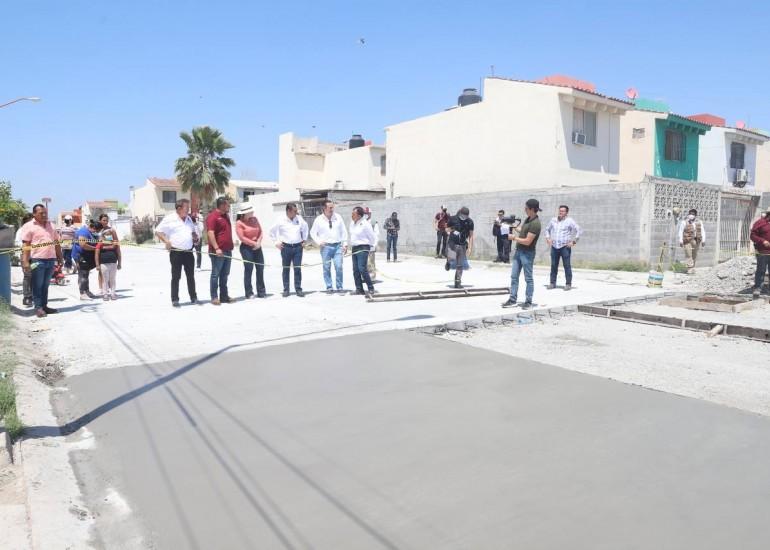 Nos encontramos a la alcaldesa Carmen Lilia Canturosas realizando un recorrido por la colonia Villas de San Miguel para supervisar el avance de obras, las que habrán de Beneficiar a peatones y automovilistas cuando sean concluidas.