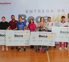 APOYA CARMEN LILIA CANTUROSAS A DEPORTISTAS DE LA CIUDAD CON ENTREGA DE BECA UNE DEL GOBIERNO MUNICIPAL