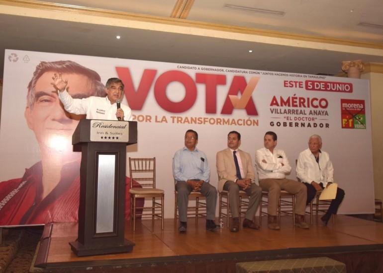 MATAMOROS, Tam.- En mi gobierno habrá un verdadero impulso al sector agrícola para tener la soberanía alimentaria donde se garantice el alimento en todos los hogares,dijo el doctor Américo Villarreal Anaya, candidato común de “Juntos Hacemos Historia”, Morena, PVEM y PT.En un encuentro con organismos y líderes empresariales, Villarreal Anaya, aseguró que su gobierno será sensible y los va a apoyar y fortalecer. “Cuenten conmigo”, les dijo.