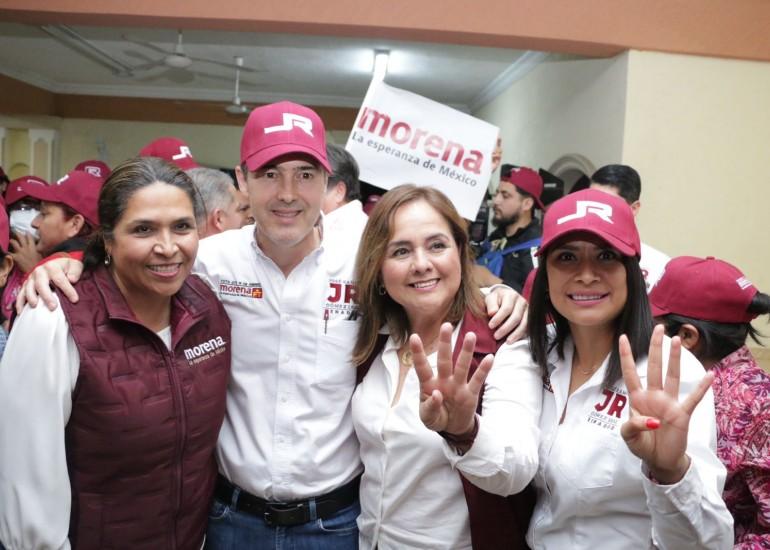 Añadió que "Morena arrasará con nuestros adversarios, dejando una huella aquí en Tamaulipas y demostrando que todos unidos jamás seremos vencidos, por que tenemos un buen gallo, el licenciado José Ramón, el triunfo es suyo".