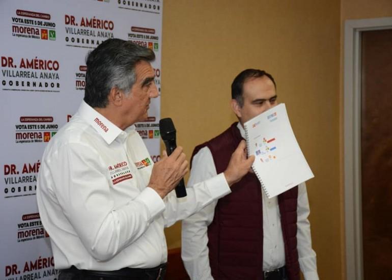 Ciudad Victoria, Tam.- Con las encuestas que lo posicionan ganador del debate en la mano, llegó el doctor Américo Villarreal Anaya a su encuentro con la prensa este lunes en donde afirmó que representa el cambio, el futuro y la esperanza y que seguirá con su mensaje propositivo ante los tamaulipecos.Américo Villarreal Anaya, candidato de la coalición “Juntos Hacemos Historia”, Morena, PVEM-PT, agradeció el apoyo de los tamaulipecos que lo consideran el mejor de los participantes en este ejercicio democrático e insistió en que todas las encuestas lo señalan como ganador del debate y lo mantienen arriba en las preferencias electorales rumbo a la jornada del próximo 5 de junio.“En todas, afortunadamente vamos en promedio general arriba de 20 puntos, tenemos algunos municipios de la frontera donde, inclusive, vamos arriba más de 30 puntos. En algunos del sur, la diferencia puede disminuir a 10 puntos, pero es consistente en todos los municipios hasta este momento, la preferencia y la perspectiva que “Juntos Hacemos Historia” es la mejor opción para el próximo gobierno”, dijo. “Vamos a seguir trabajando y ser más propositivos y tener una visión de esperanza, de futuro, esa fuerza, y ese poder que nos da la gente y nos fortalece para salir adelante”, indicó.Sobre los ataques que le hicieron en el debate, respondió:“Ustedes me conocen, saben dónde estuve los últimos 30 años, en el Hospital General y en mi consultorio, nos conocemos. Ustedes saben que esa guerra sucia no tiene sustento y no han podido encontrar ninguna otra situación, hasta con documentos apócrifos, que es a lo que están acostumbrados; aquí se construyen expedientes en base a puras denuncias o de notas periodísticas de quien se presta, para crear carpetas y hostigar a la gente”, denunció.El doctor Américo aseguró que sus adversarios no se han dado cuenta que el pueblo de Tamaulipas ya despertó y va a votar masivamente para respaldar lo que se está pronosticando en las encuestas.“Ellos quieren ver cómo nos pueden restar puntos, el pueblo es inteligente ya despertó y no nos han podido bajar, pretenden estar a un punto y con un punto poder operar el día de la elección, pero no cuentan con que el pueblo va a salir a votar masivamente para respaldar lo que nos está diciendo en las encuestas, mi mejor encuesta es estar al frente de la gente, ver el entusiasmo, el cariño, la participación de la gente en busca de una esperanza”, indicó.Asi mismo reiteró el compromiso que ha hecho con los empresarios tamaulipecos de ejercer un gobierno honesto y acabar con los “moches”.“No se va a pedir “moches”, no hay “moches” en el próximo gobierno, ese es dinero que debe ser destinado al crecimiento de Tamaulipas”, insistió.