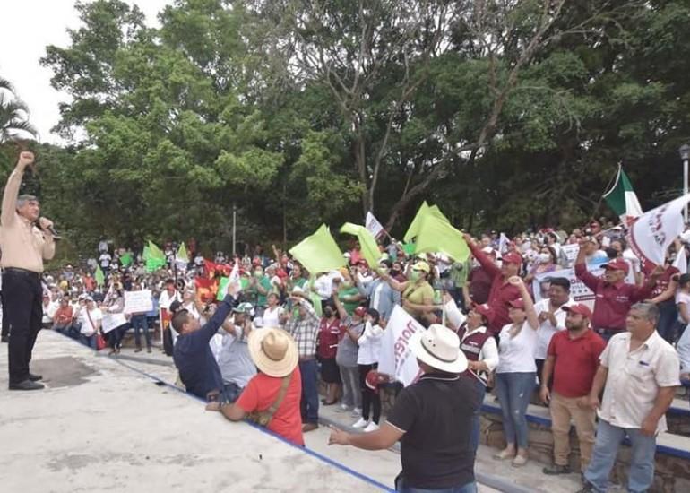 GÓMEZ FARÍAS, Tam.- Desde la puerta de "El Cielo", rodeado de árboles y exigencias de cañeros que pedían en cartulinas el rescate del Ingenio de Xicoténcatl, el doctor Américo Villarreal Anaya, candidato de la coalición “Juntos Hacemos Historia”, propuso decirle adiós este 5 de junio a los gobiernos del PRIAN.