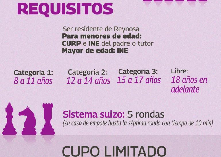 Este próximo sábado 09 de diciembre, el Sistema DIF Reynosa que encabeza Carlos Luis Peña Garza, realizará el Torneo de Ajedrez "DIF Siempre Contigo", donde se espera la participación de menores de edad, jóvenes y adultos.