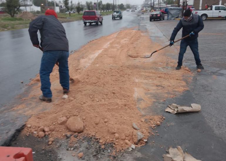 Por instrucciones del Presidente Municipal, Carlos Peña Ortiz, la Comisión Municipal de Agua Potable y Alcantarillado de Reynosa, realiza trabajos de rehabilitación del drenaje sanitario en el bulevar Morelos, frente a la entrada de la colonia La Presa.