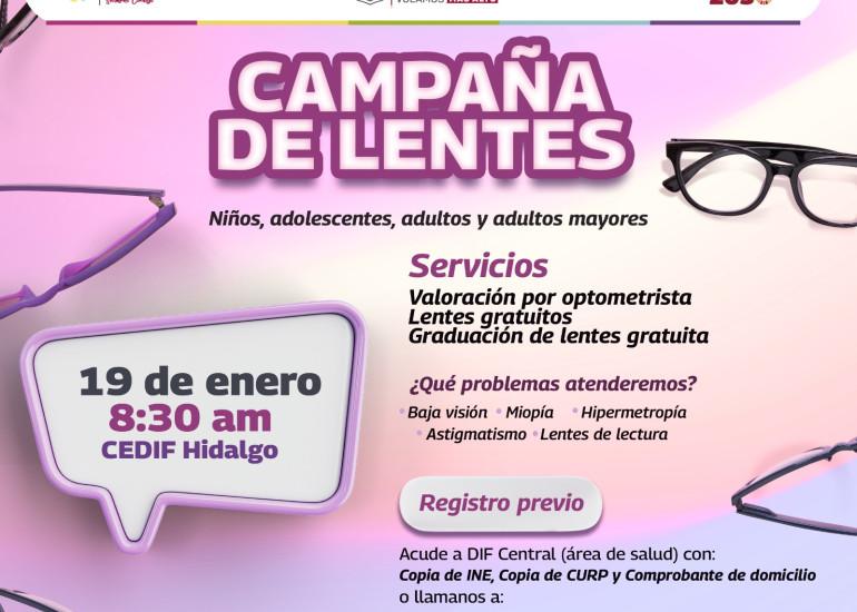 Este viernes 19 de enero se realizará la Campaña de Lentes gratuita que organiza el Gobierno Municipal de Reynosa, que encabeza el Alcalde Carlos Peña Ortiz, a través del Sistema DIF Reynosa que preside Carlos Luis Peña Garza.