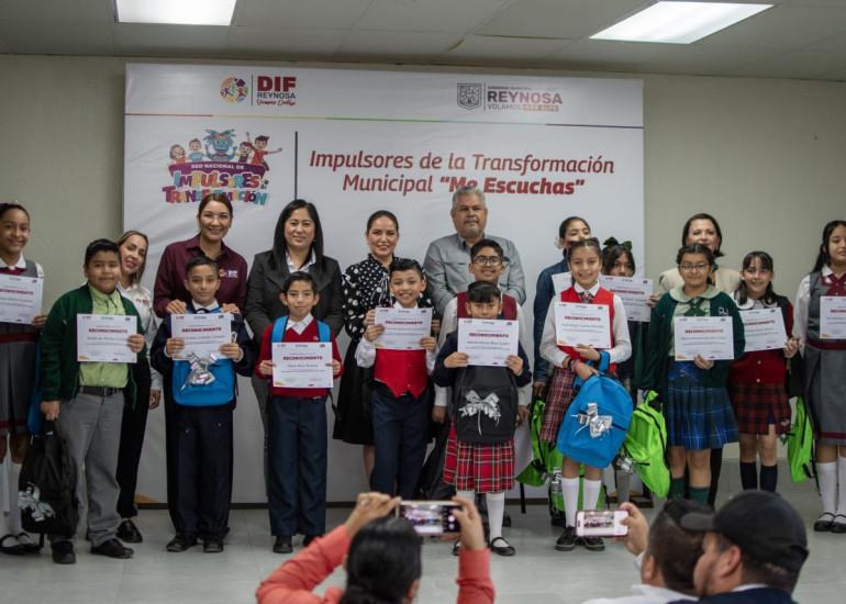 El Sistema DIF Reynosa que preside Carlos Luis Peña Garza, llevó a cabo el foro Impulsores de la Transformación Municipal "Me Escuchas", donde participaron 13 estudiantes de quinto y sexto de primaria, con propuestas de temas importantes como inclusión, espacios públicos, cultura, arte, deporte, cultura de paz y cuidado del medio ambiente.