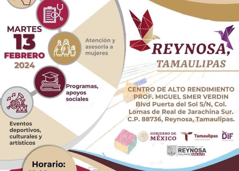 Este programa se efectuará el martes 13 de febrero de 10:00 a 16:00 horas en el Centro de Alto Rendimiento de Jarachina Sur, con asesorías en trámites para jóvenes y adultos, apoyos sociales, servicios médicos y bolsa de trabajo, entre otras acciones que mejoren el bienestar de las familias reynosenses.