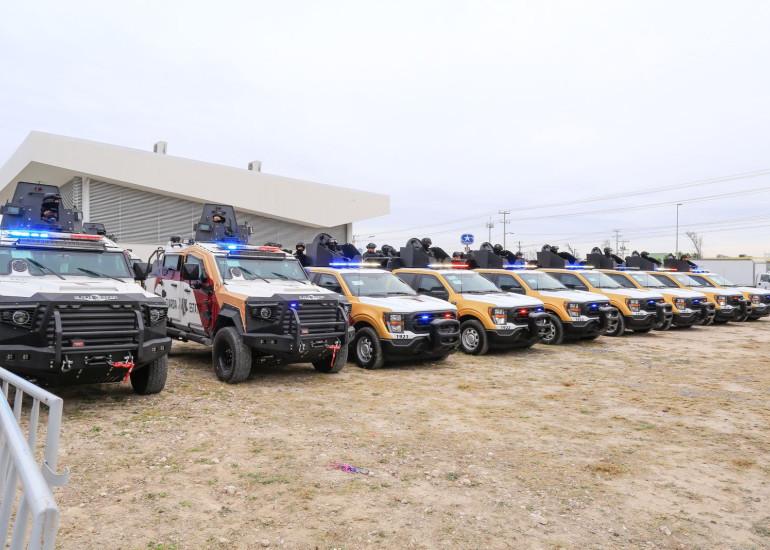 En el evento celebrado en el marco de la Feria de la Paz, en el Centro de Alto Rendimiento de esta ciudad, el secretario de Seguridad Pública, Sergio Chávez García detalló la entrega de 10 unidades Black Mamba y 30 camionetas blindadas que se suman a las tareas de vigilancia en la región fronteriza, además de que se desplegarán 30 elementos de la Guardia Estatal en el municipio de Reynosa.