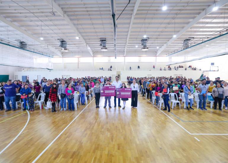 "Aquí están los papás de muchos jóvenes que se mantienen en la escuela, pero otros no regresaron a las aulas después de la pandemia y ahí pido su ayuda para ubicar las familias que están batallando para ingresar a sus hijos a las escuelas", dijo el Presidente Carlos Peña Ortiz, a los asistentes a la entrega de tarjetas bancarias del programa social.
