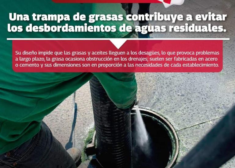 Contar con una trampa de grasas, evita el desbordamiento de aguas residuales, por lo que el Alcalde Carlos Peña Ortiz, está exhortando a los negocios para que instalen estos dispositivos a fin de cuidar el sistema de drenaje de la ciudad.