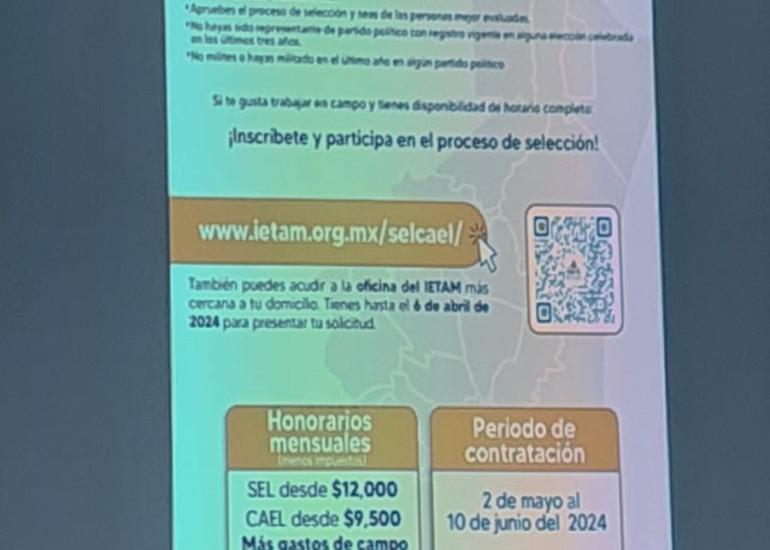 Abre IETAM convocatoria para capacitadores y supervisores electorales