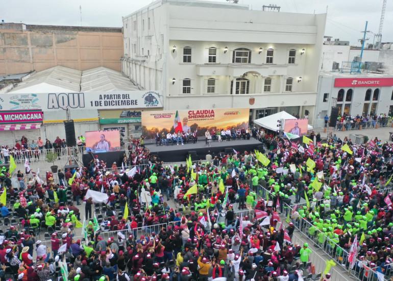 Ante más de 12 Mil reynosenes Claudia Sheinbaum refrendó apoyo a Plan C que encabezan Maki y Eugenio