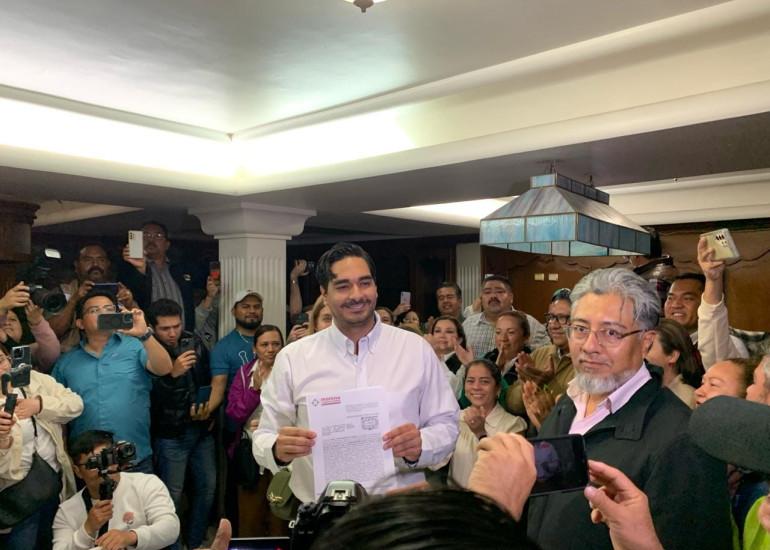 Acompañado de su madre la candidata al senado por el Partido Verde Ecologista de México, Maki Ortiz Domínguez, agradeció al órgano electoral por aceptar su solicitud de registro y la de su planilla.