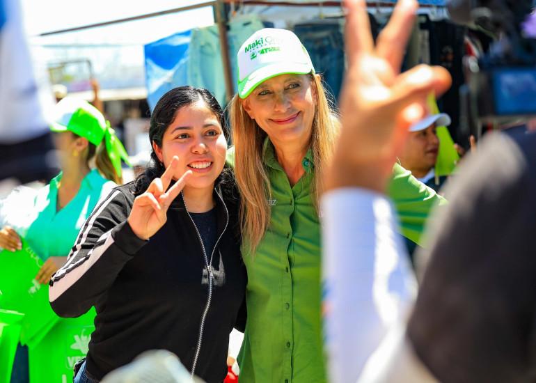 Alzan la V de Verde con Maki Ortiz en el tianguis Las Torres